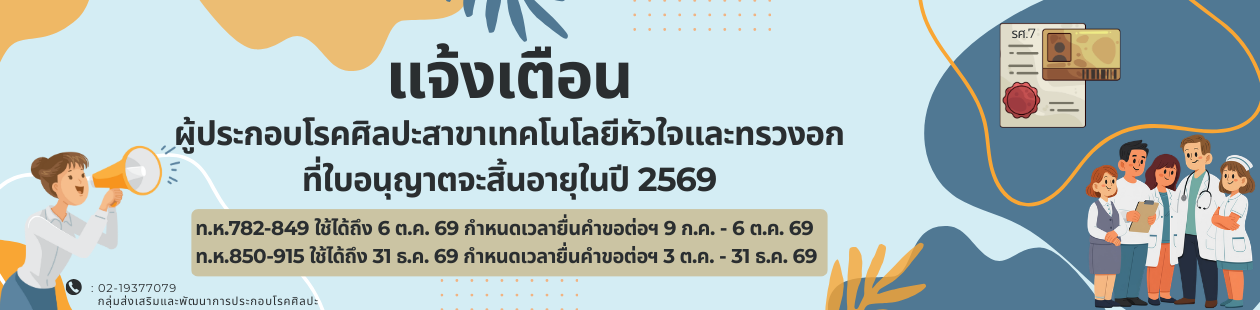การขอต่ออายุใบอนุญาตเป็นผู้ประกอบโรคศิลปะสาขาเทคโนโลยีหัวใจและทรวงอก ประจำปี 2567